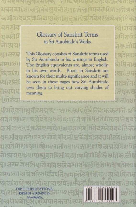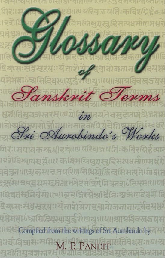 This Glossary consists of Sanskrit terms used by Sri Aurobindo in his writings in English. The English equivalents are, almost wholly, in his own words. Roots in Sanskrit are known for their multi-significance and it will be seen in these pages how Sri Aurobindo uses them to bring out varying shades of meaning.